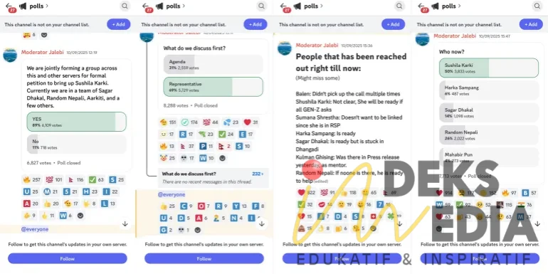 KATHMANDU, INDEKSMEDIA.ID – Platform pesan daring Discord, yang biasanya digunakan para gamer, tiba-tiba menjelma menjadi “parlemen virtual” bagi ribuan anak muda Nepal. Melalui debat sengit dan pemungutan suara daring, Gen Z Nepal memilih pemimpin baru setelah kerusuhan mematikan menumbangkan pemerintahan Perdana Menteri KP Sharma Oli.